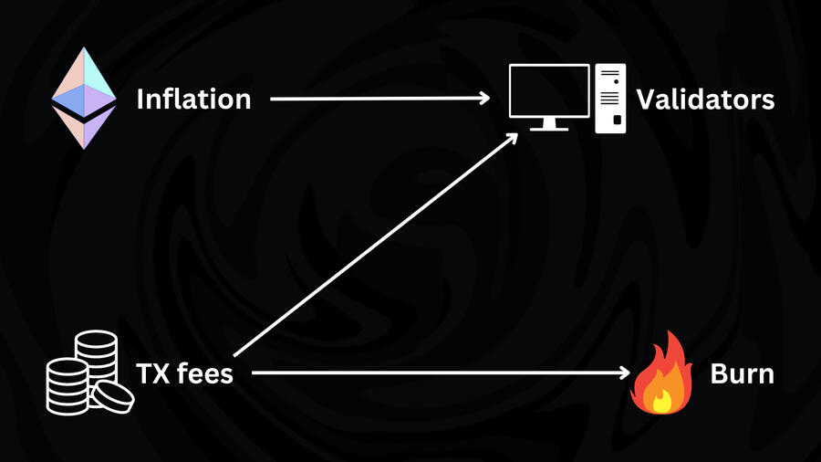 Besides, Ethereum also has inflation which goes to the validators ( if the fees are above about 19 gwei so Ethereum remains deflationary despite inflation )